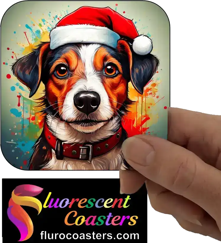 Fluorescent Coasters - Jack Russell Dog Wearing Christmas Hat 1, Festivities / Religion, 402423