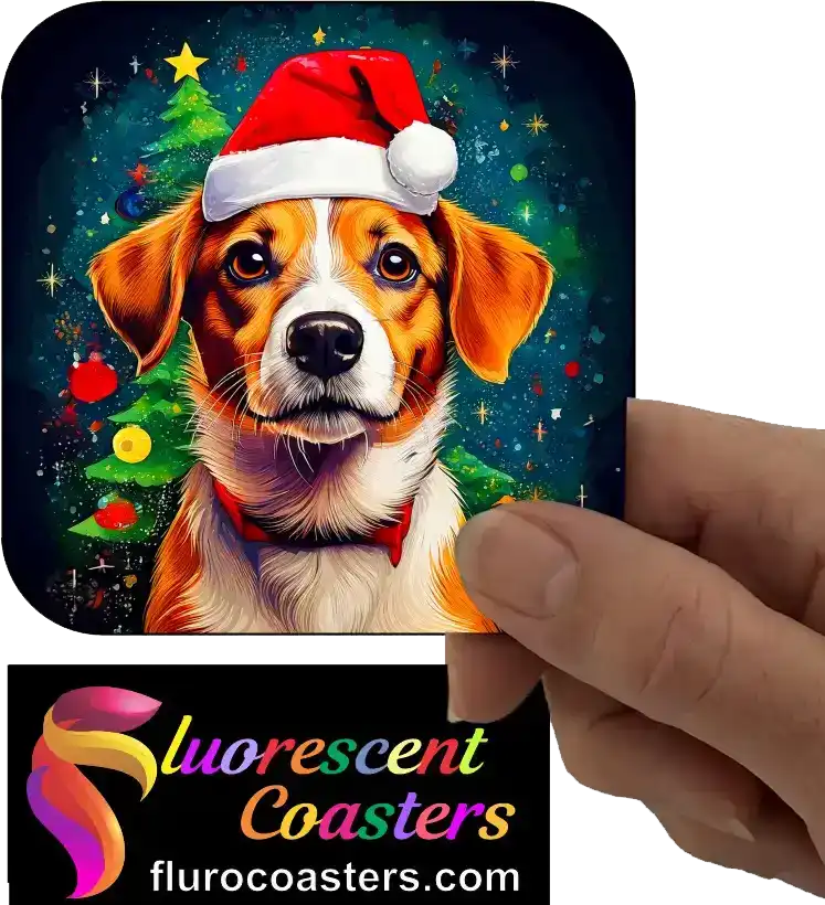 Fluorescent Coasters - Jack Russell Dog Wearing Christmas Hat 5, Festivities / Religion, 402427