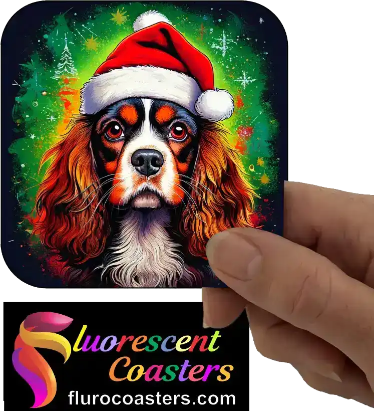 Fluorescent Coasters - Cavalier King Charles Spaniel Dog Wearing Christmas Hat 1, Festivities / Religion, 402431
