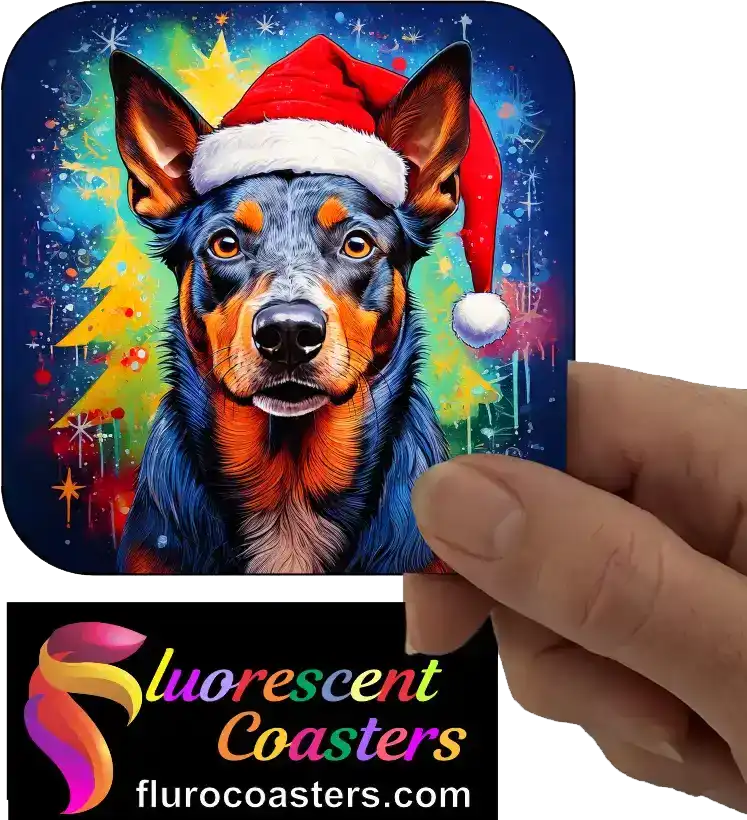 Fluorescent Coasters - Blue Heeler Dog Wearing Christmas Hat 1, Festivities / Religion, 402433