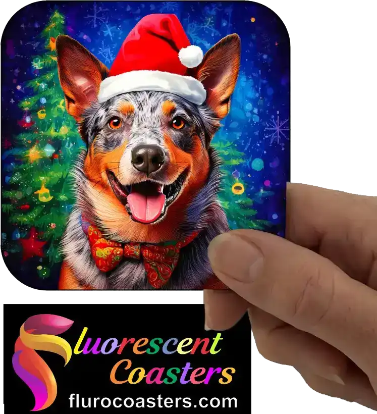 Fluorescent Coasters - Australian Cattle Dog Wearing Christmas Hat 1, Festivities / Religion, 402434