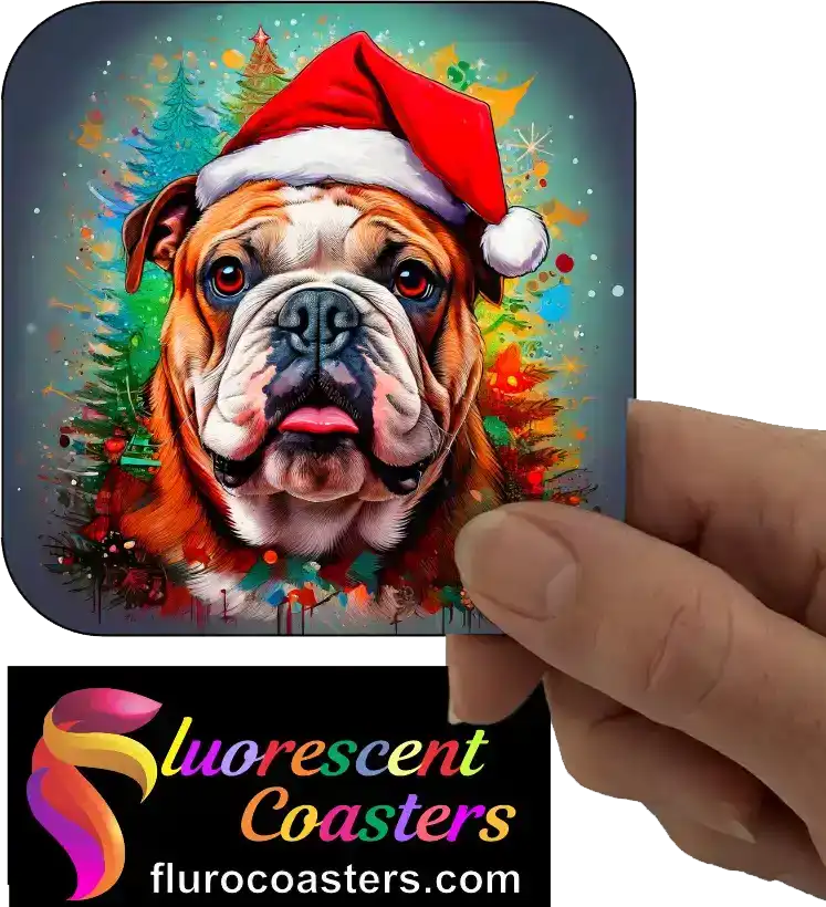 Fluorescent Coasters - Bulldog Dog Wearing Christmas Hat 1, Festivities / Religion, 402435
