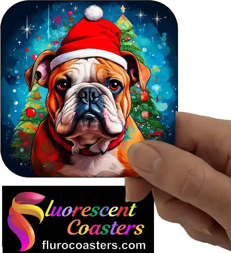Fluorescent Coasters - Bulldog Dog Wearing Christmas Hat 2, Festivities / Religion, 402436
