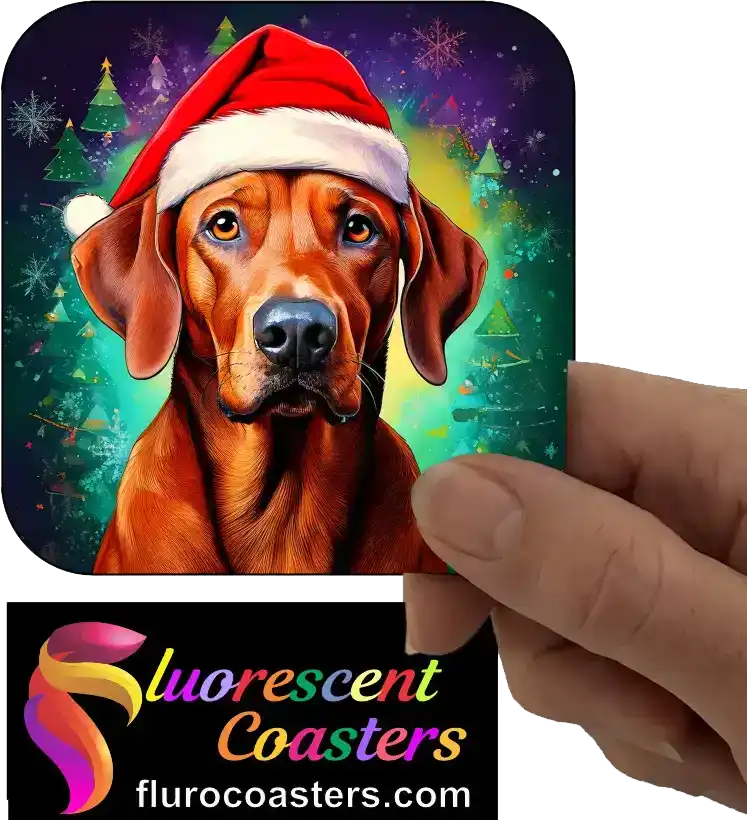 Fluorescent Coasters - Rhodesian Ridgeback Dog Wearing Christmas Hat 1, Festivities / Religion, 402439