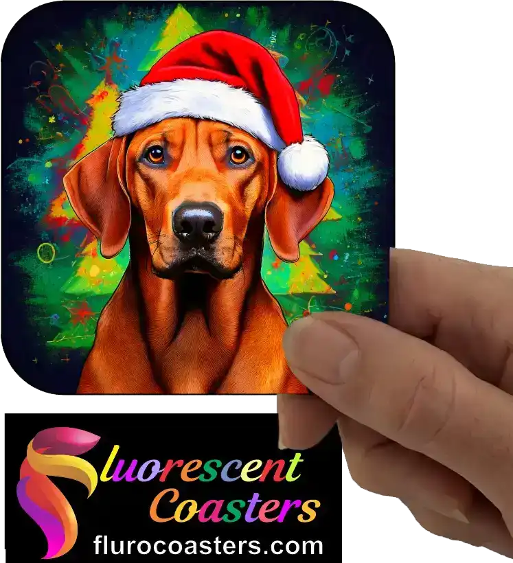 Fluorescent Coasters - Rhodesian Ridgeback Dog Wearing Christmas Hat 2, Festivities / Religion, 402440