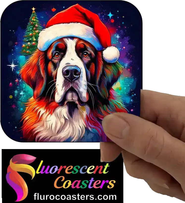 Fluorescent Coasters - St Bernard Dog Wearing Christmas Hat 1, Festivities / Religion, 402441