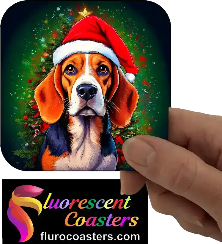 Fluorescent Coasters - Beagle Dog Wearing Christmas Hat 2, Festivities / Religion, 402443
