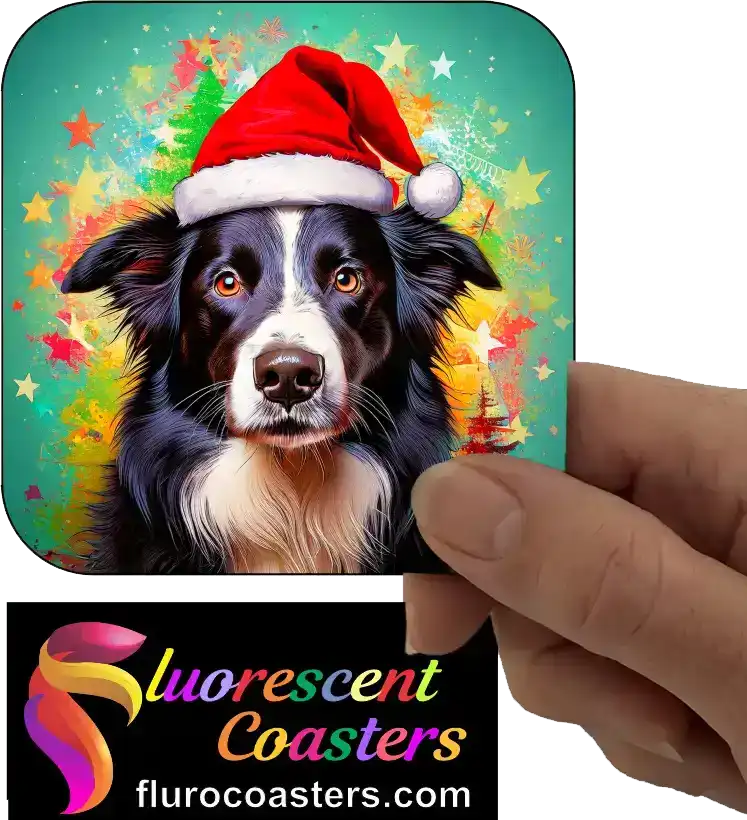 Fluorescent Coasters - Border Collie Dog Wearing Christmas Hat 2, Festivities / Religion, 402449