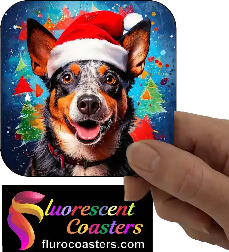 Fluorescent Coasters - Australian Cattle Dog Wearing Christmas Hat 2, Festivities / Religion, 402452