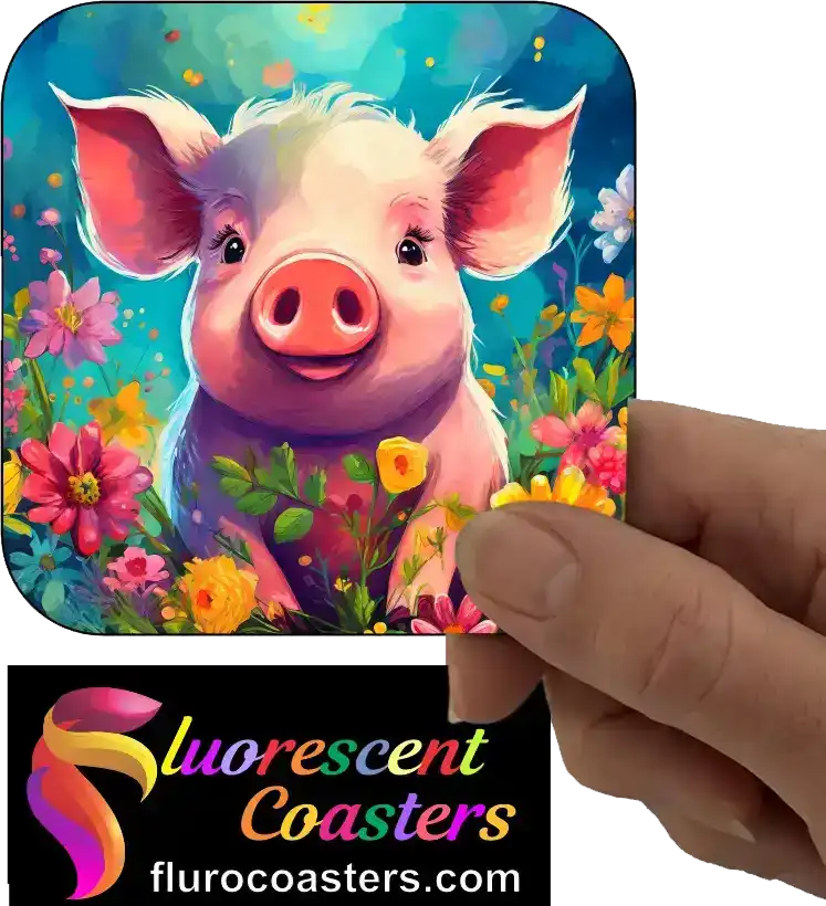 Fluorescent Coasters - Pig 4, Farm Animals, 402481
