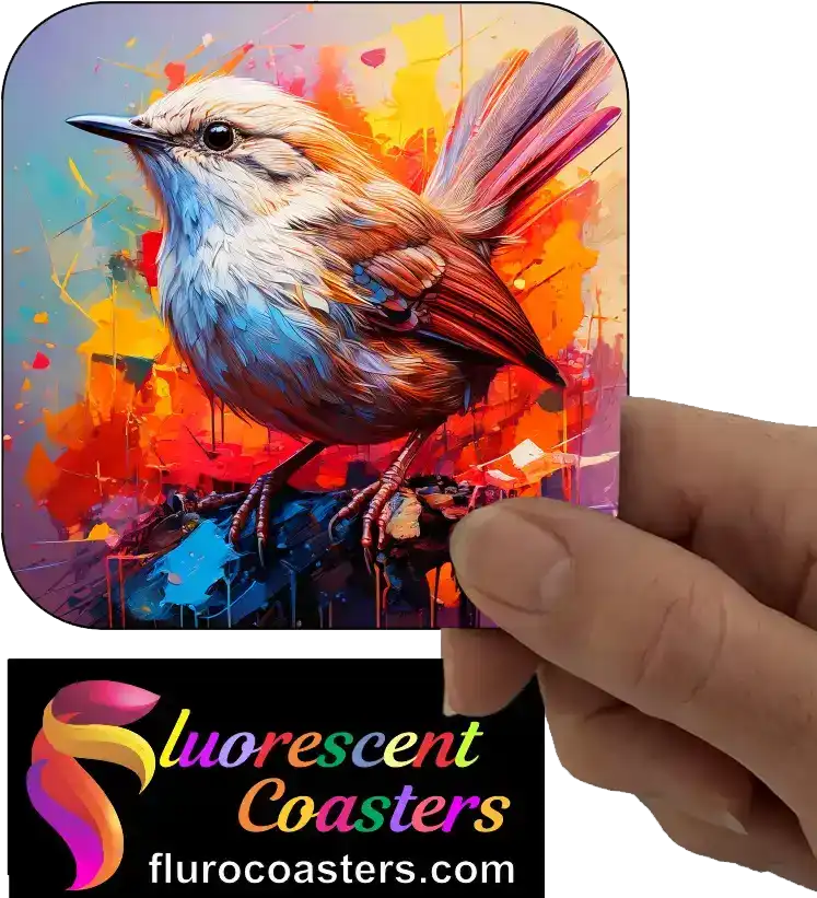Fluorescent Coasters - Wren Bird 5, Birds, 402564
