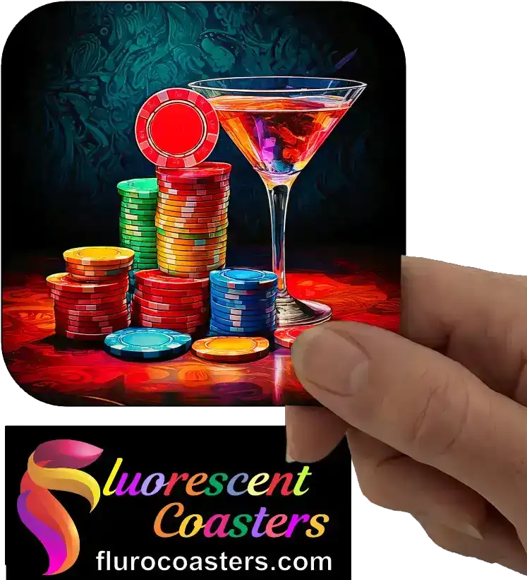Fluorescent Coasters - Casino Chips with Martini Glass 1, Alcohol, 402572