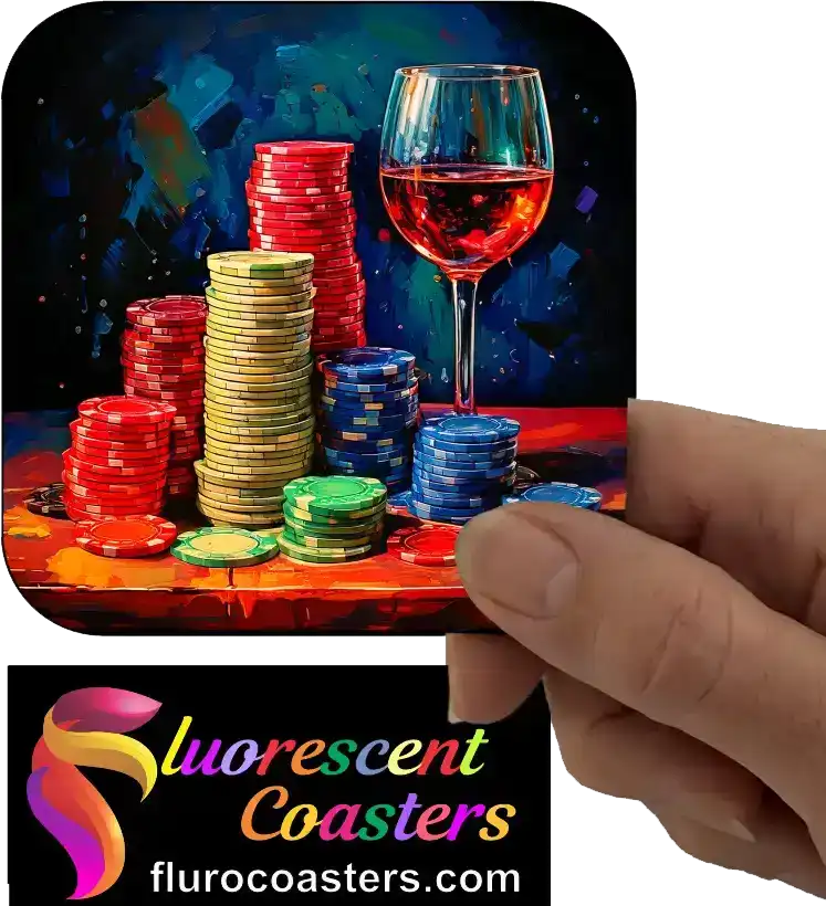 Fluorescent Coasters - Casino Chips with Red Wine Glass 3, Alcohol, 402577