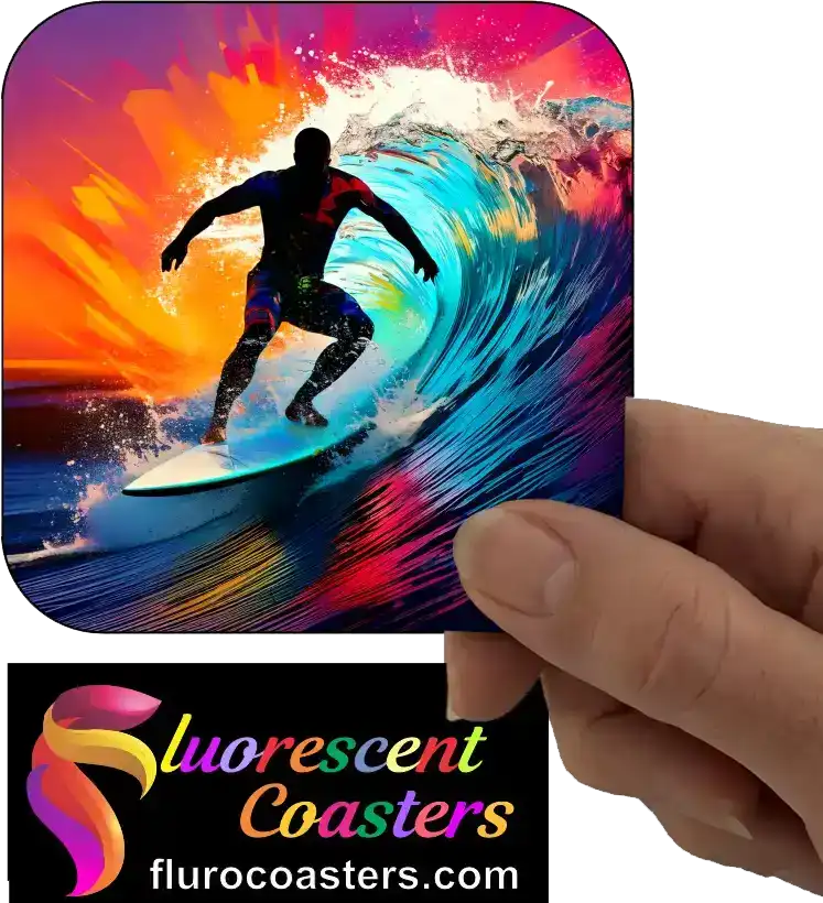 Fluorescent Coasters - Male Surfer Surfing 1, Sports, 402582