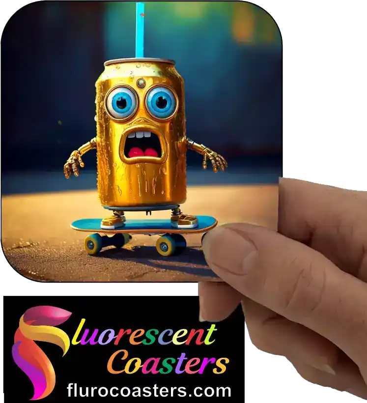 Fluorescent Coasters - Can of Drink On Skateboard 1, Humour, 402596