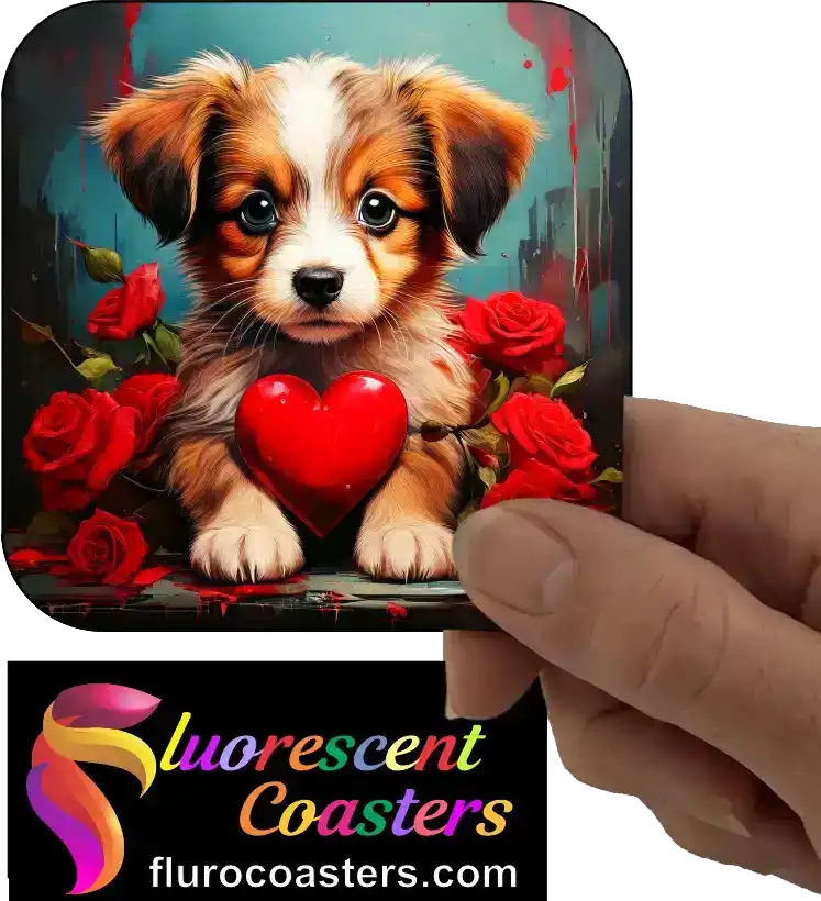 Fluorescent Coasters - Valentines Dog 1, Humour / Cartoon Dogs, 402606