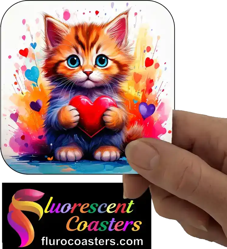 Fluorescent Coasters - Valentines Cat 2, Cats, 402608