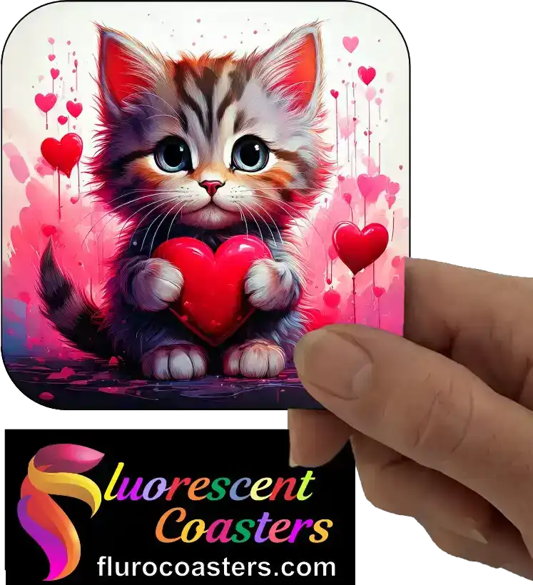 Fluorescent Coasters - Valentines Cat 3, Cats, 402609