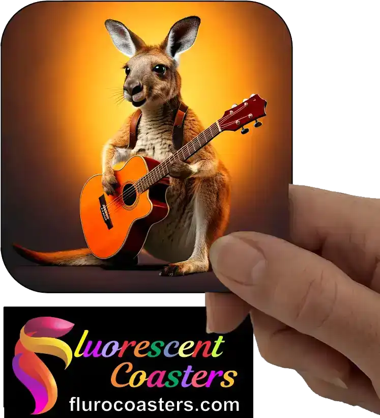 Fluorescent Coasters - Kangaroo Playing Guitar, Australian Wildlife, 402614