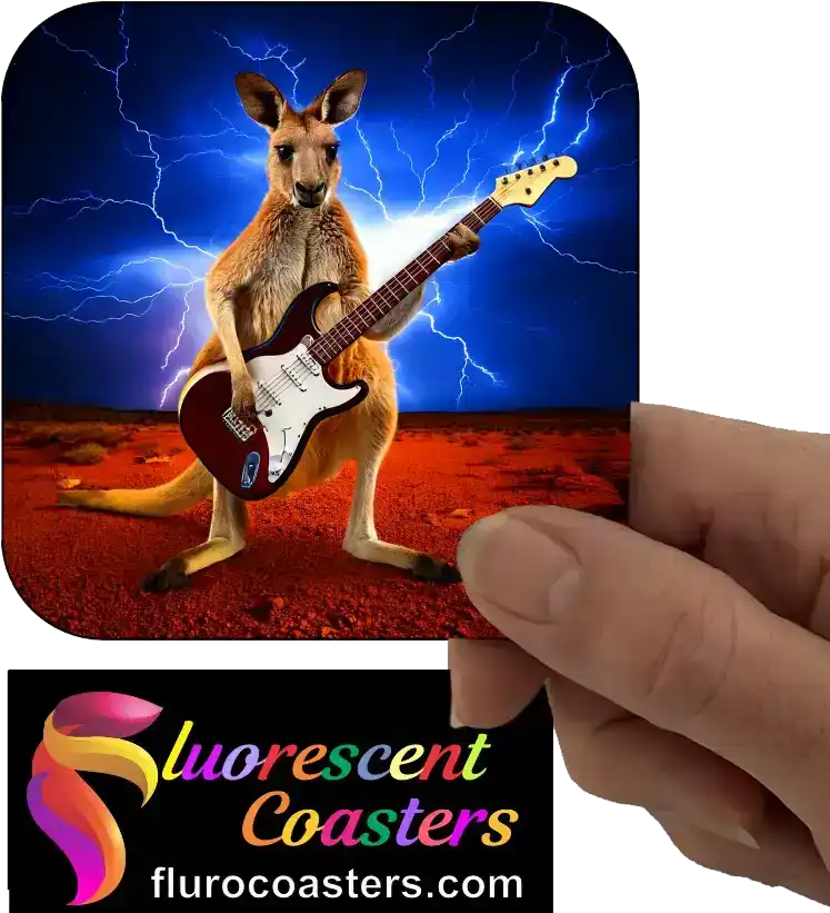 Fluorescent Coasters - Kangaroo Playing Electric Guitar 3, Australian Wildlife, 402617