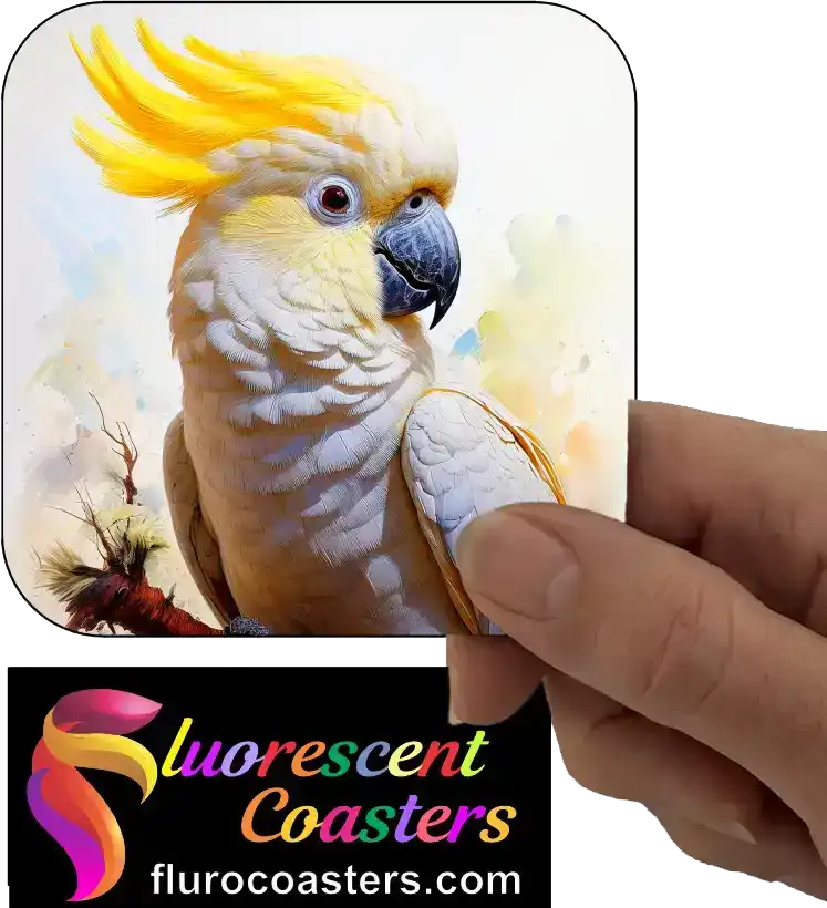 Fluorescent Coasters - Cockatoo Yellow Sulphur Crested 4, Birds, 402627