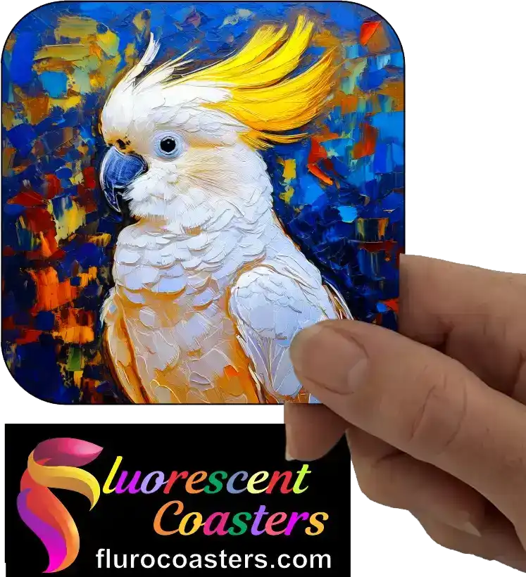 Fluorescent Coasters - Cockatoo Yellow Sulphur Crested 8, Birds, 402631