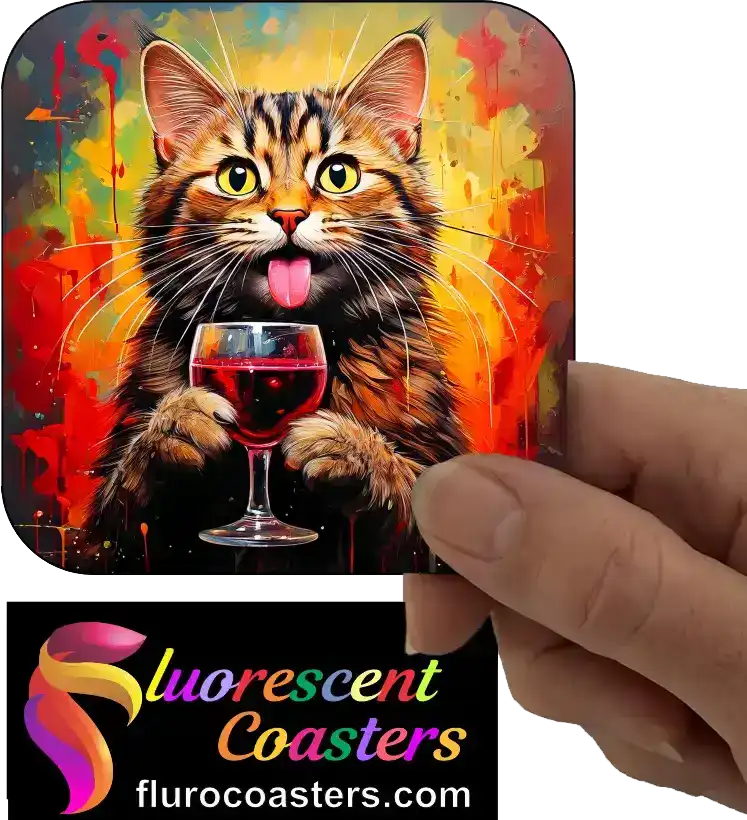 Fluorescent Coasters - Cat With Red Wine 6, Cats, 402656