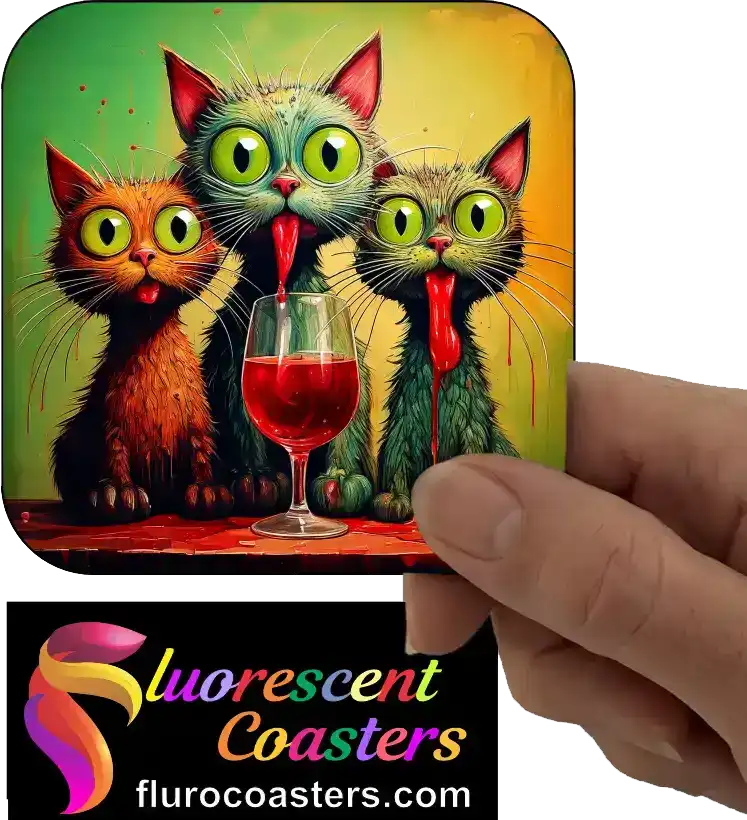 Fluorescent Coasters - Cats With Red Wine 2, Cats, 402658