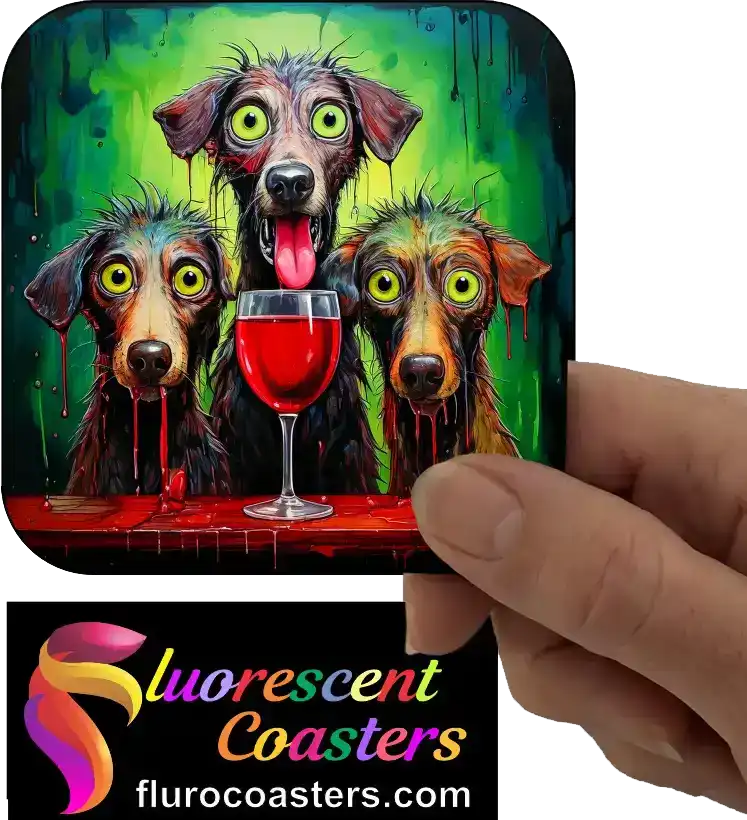 Fluorescent Coasters - Dogs With Red Wine 2, Humour / Cartoon Dogs, 402660