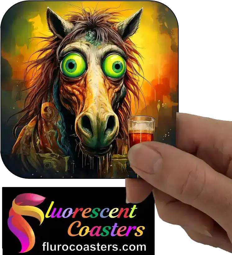 Fluorescent Coasters - Horse With Red Wine, Farm Animals, 402665