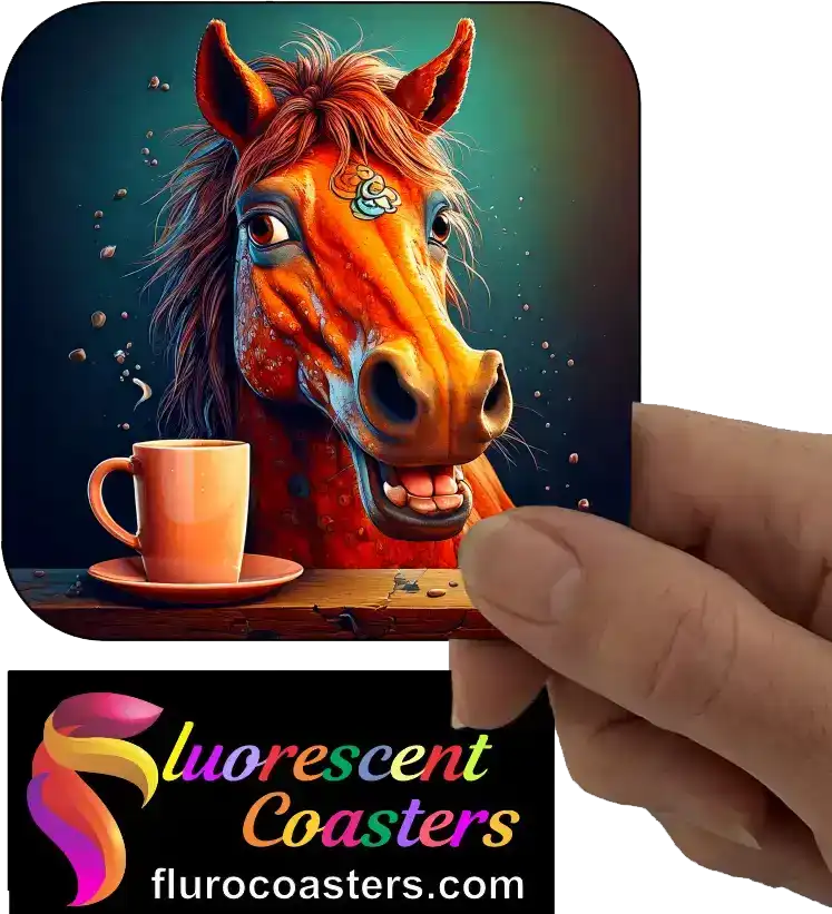 Fluorescent Coasters - Horse With Cup of Coffee, Farm Animals, 402666