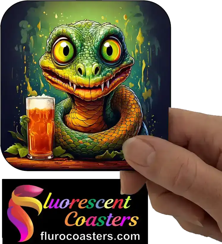 Fluorescent Coasters - Snake With Glass Of Beer 1, Reptiles - Amphibians, 402668