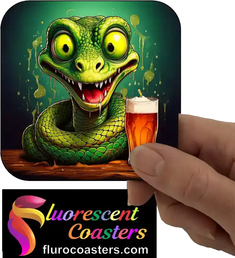 Fluorescent Coasters - Snake With Glass Of Beer 2, Reptiles - Amphibians, 402669
