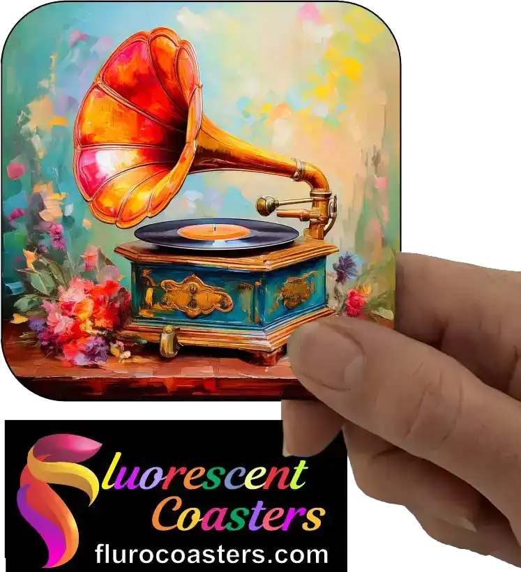 Fluorescent Coasters - Old Antique Record Player Turn Table 2, Home Decor, 402686