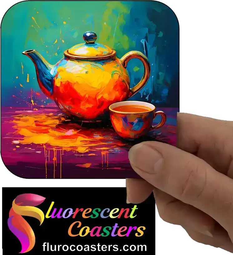 Fluorescent Coasters - Pot Of Tea With Cup 2, Home Decor, 402696