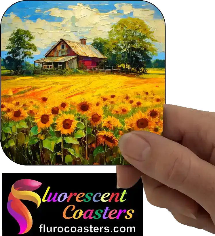 Fluorescent Coasters - Farm House With Field of Flowers 2, Nature, 402708