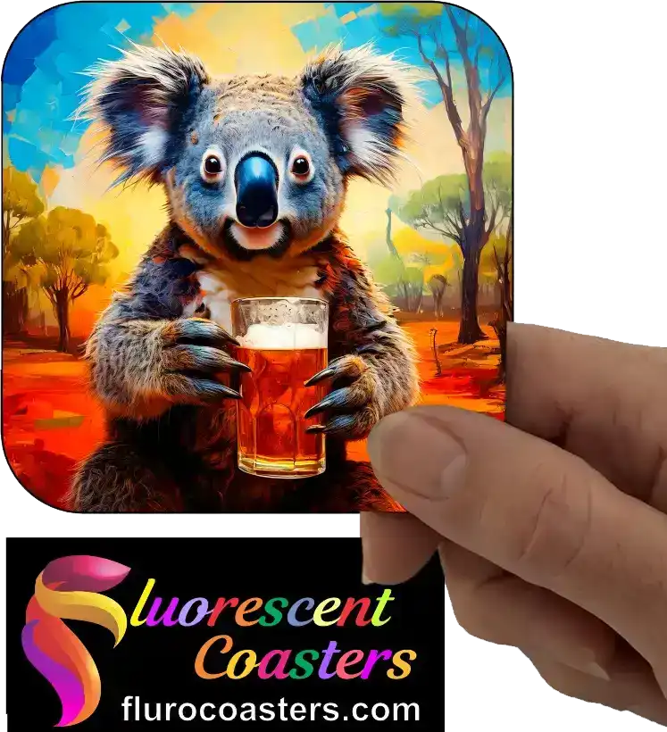 Fluorescent Coasters - Koala With Beer Glass 1, Australian Wildlife, 402736