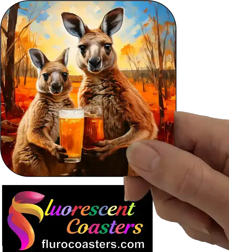 Fluorescent Coasters - Kangaroo With Beer Glass 2, Australian Wildlife, 402738