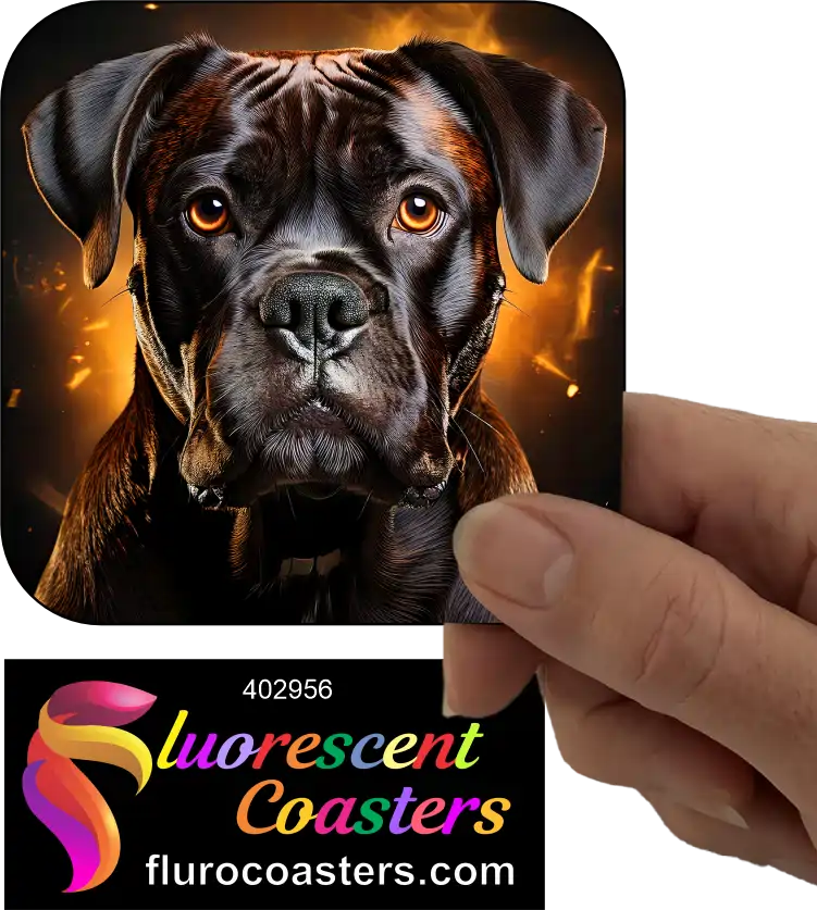Fluorescent Coasters - Black Boxer Dog 1, Boxer, 402956