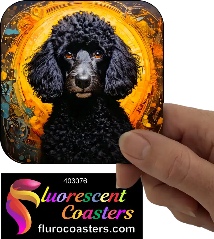 Fluorescent Coasters - Black Poodle Dog 4, Poodle, 403076