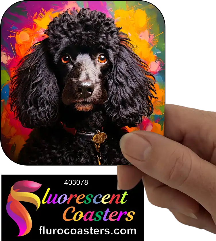 Fluorescent Coasters - Black Poodle Dog 6, Poodle, 403078