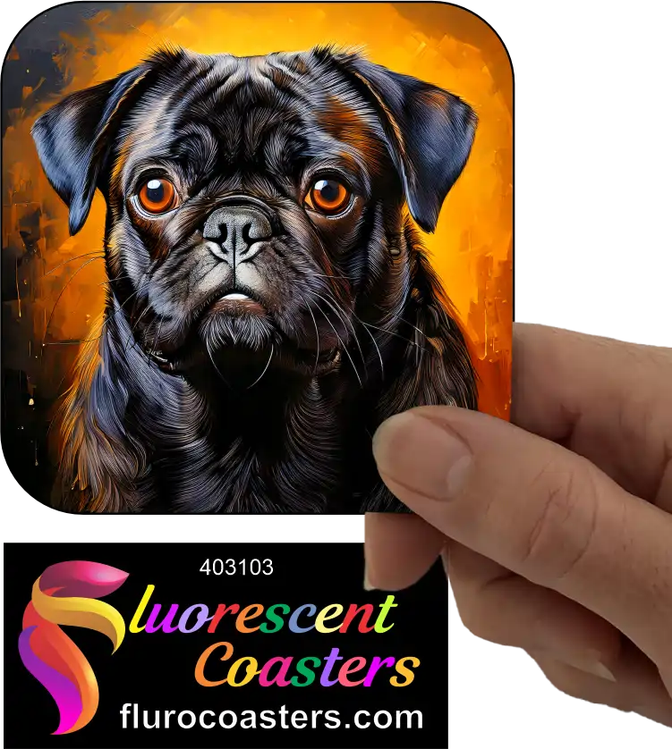 Fluorescent Coasters - Black Pug Dog 3, Pug Dog, 403103