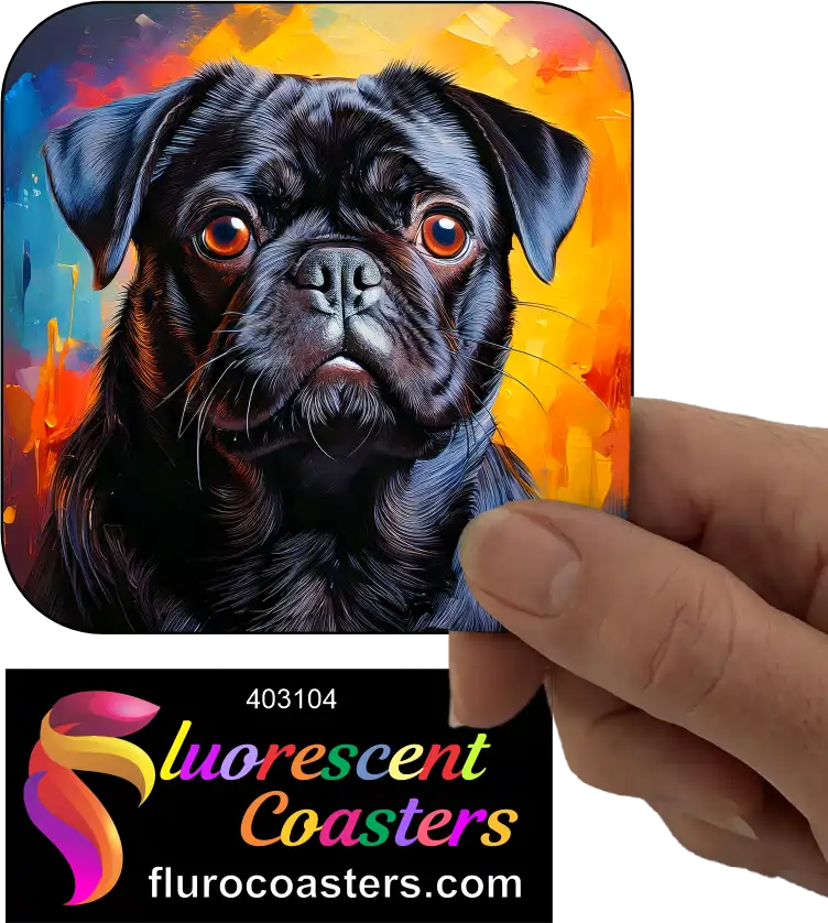 Fluorescent Coasters - Black Pug Dog 4, Pug Dog, 403104