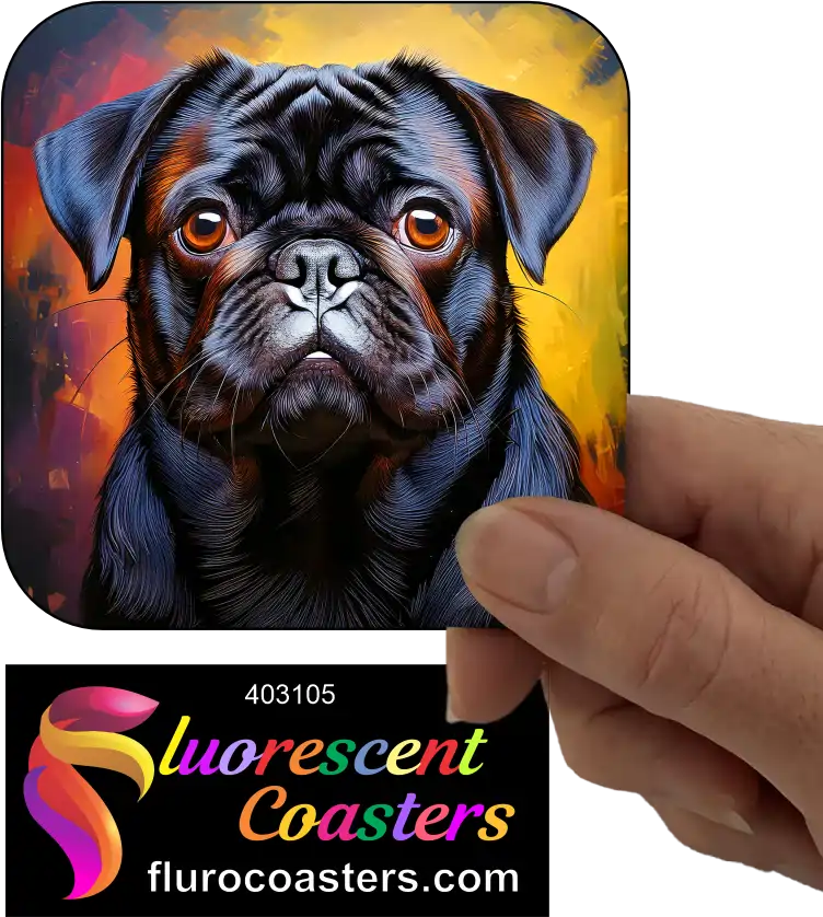 Fluorescent Coasters - Black Pug Dog 5, Pug Dog, 403105