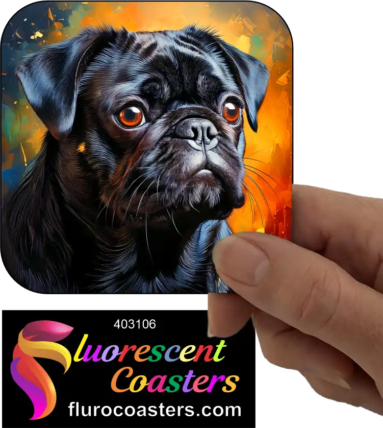Fluorescent Coasters - Black Pug Dog 6, Pug Dog, 403106