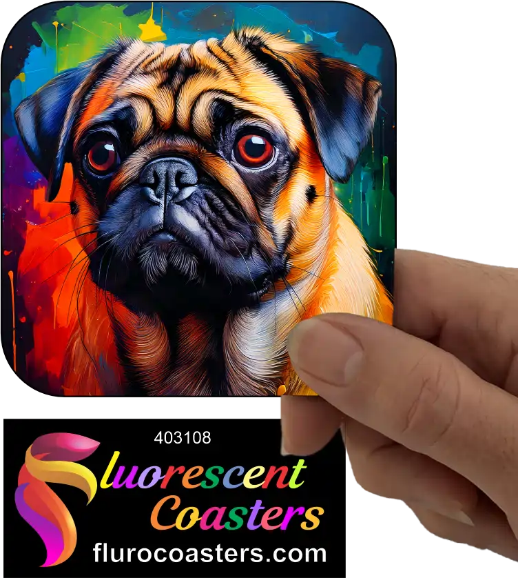 Fluorescent Coasters - Pug Dog 5, Pug Dog, 403108