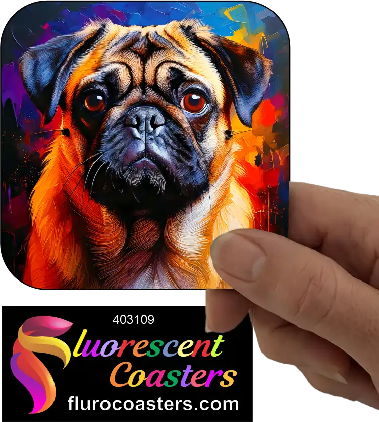 Fluorescent Coasters - Pug Dog 6, Pug Dog, 403109