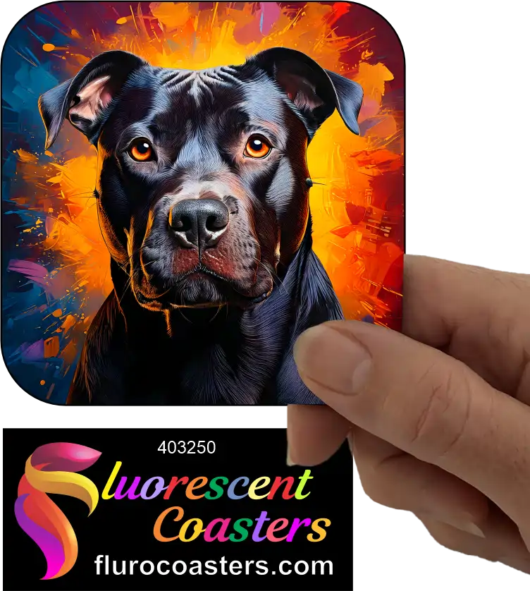 Fluorescent Coasters - Black Staffordshire Bull Terrier Dog 2, Terrier Dogs, 403250