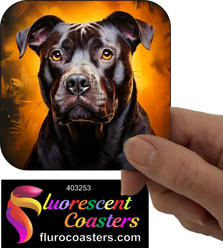 Fluorescent Coasters - Black Staffordshire Bull Terrier Dog 5, Terrier Dogs, 403253
