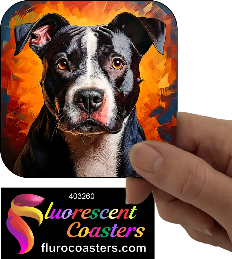 Fluorescent Coasters - Black Staffordshire Bull Terrier Dog 12, Terrier Dogs, 403260